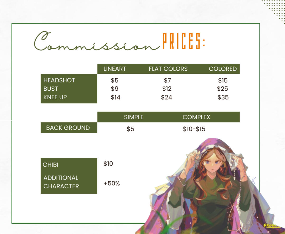 The default prices listed is for personal use commissions only. For commercialized uses, pls contact me via my socials.